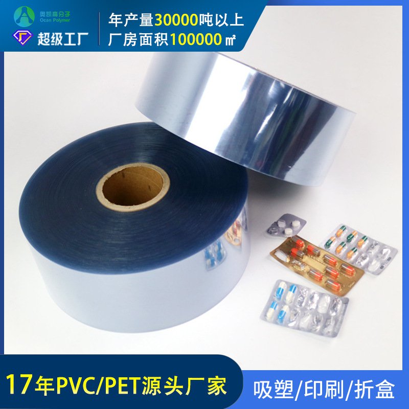 PVC塑料片因其具有良好的韧性和易加工特性使其它在吸塑包装行业应用特别广泛,透明PVC卷材凭借着自身高透光度和环保性常常被国外客户用于经典且成熟的吸塑药包上来使用。我相信很多人也好奇为啥不用PET材料?PET片材比PVC片材更环保,透光度更高呢。的确,其实如果不考虑和铝箔热封问题,其PET不管是成本上还是透明度环保都比PVC好很多。所以生活中我们常常看见的片剂、胶囊,其实都是用PVC卷材吸塑泡罩包装的。