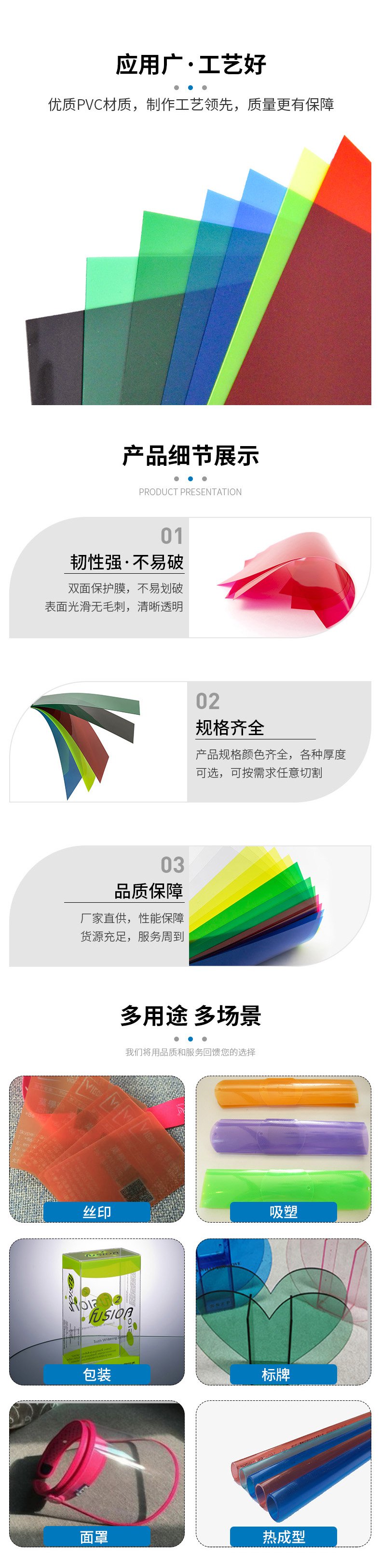 苏州奥凯高分子材料厂家研发、生产及销售PVC透明片材、卷材和膜,此PVC片材为彩色透明片,具有无晶点,无流纹等特点,落锤冲击不破裂,可加保护膜,此类PVC片材主要应用于电子、折盒、吸塑、印刷、建材、工具等各个行业。苏州奥凯高分子材料股份有限公司